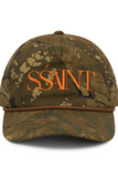 Featuring a vibrant orange embroidered SŚAINT logo on the front, subtle heart embroidery on the back, and a unique rope detail across the front brim, this cap blends style with functionality.