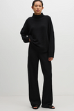 Features include a raised neckline with a roll finish, and soft ribbed cuffs and hem.