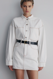 The Organic Denim Overshirt is made from 8 oz 100% organic cotton denim, stone washed to an authentic stone wash blue. The silhouette is oversized with a drop shoulder and length finishing below the hips. Features include front patch pockets & branded shank button through centre and sleeve cuff.
