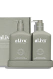 The al.ive body Wash & Lotion Duo in Green Pepper & Lotus contains a luxurious blend of naturally derived ingredients, fortified with essential oils and native botanical extracts.